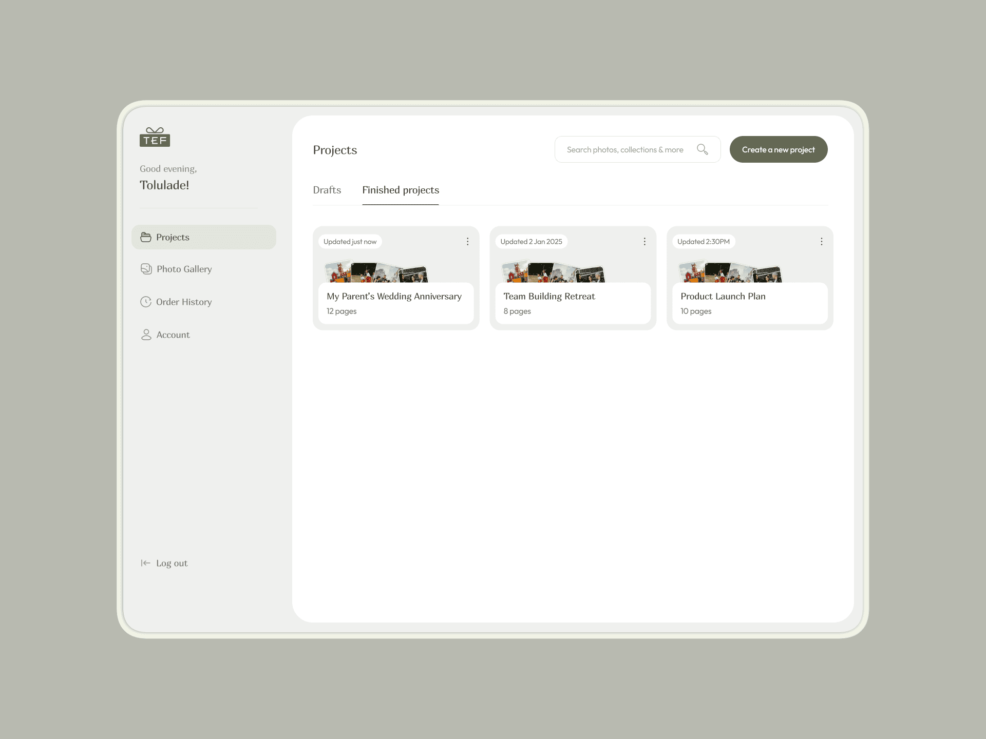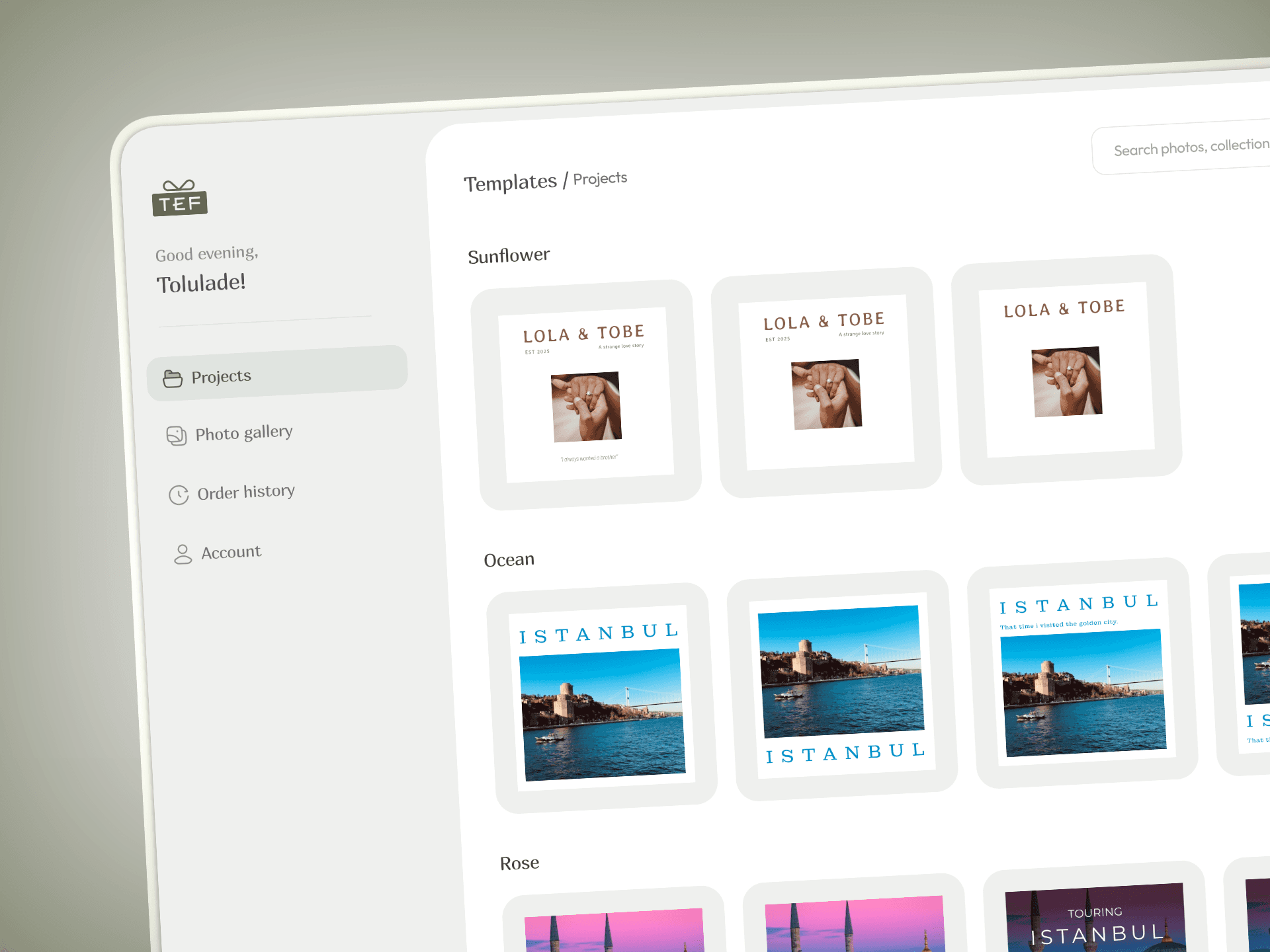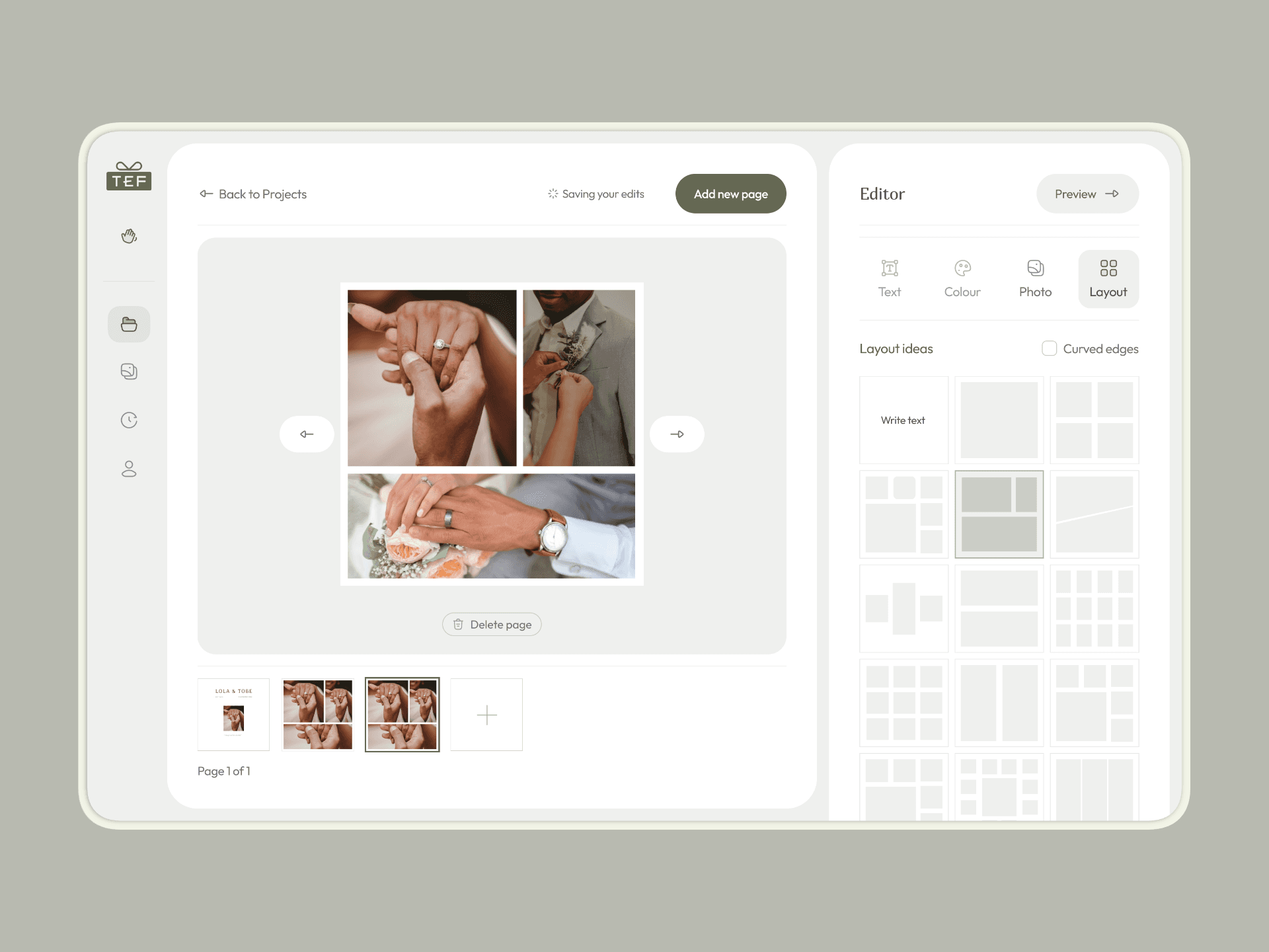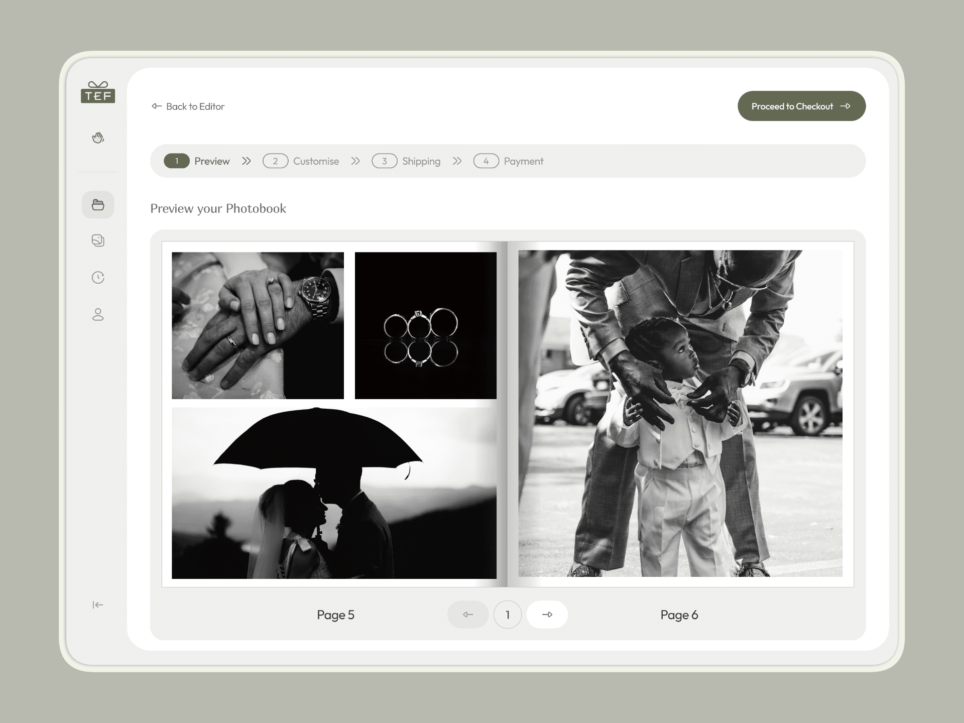 Built for people of all ages, TEF aimed to make designing and ordering photobooks as easy as changing a wallpaper. The platform offers already designed templates, an easy to use customisation engine and a simple checkout process