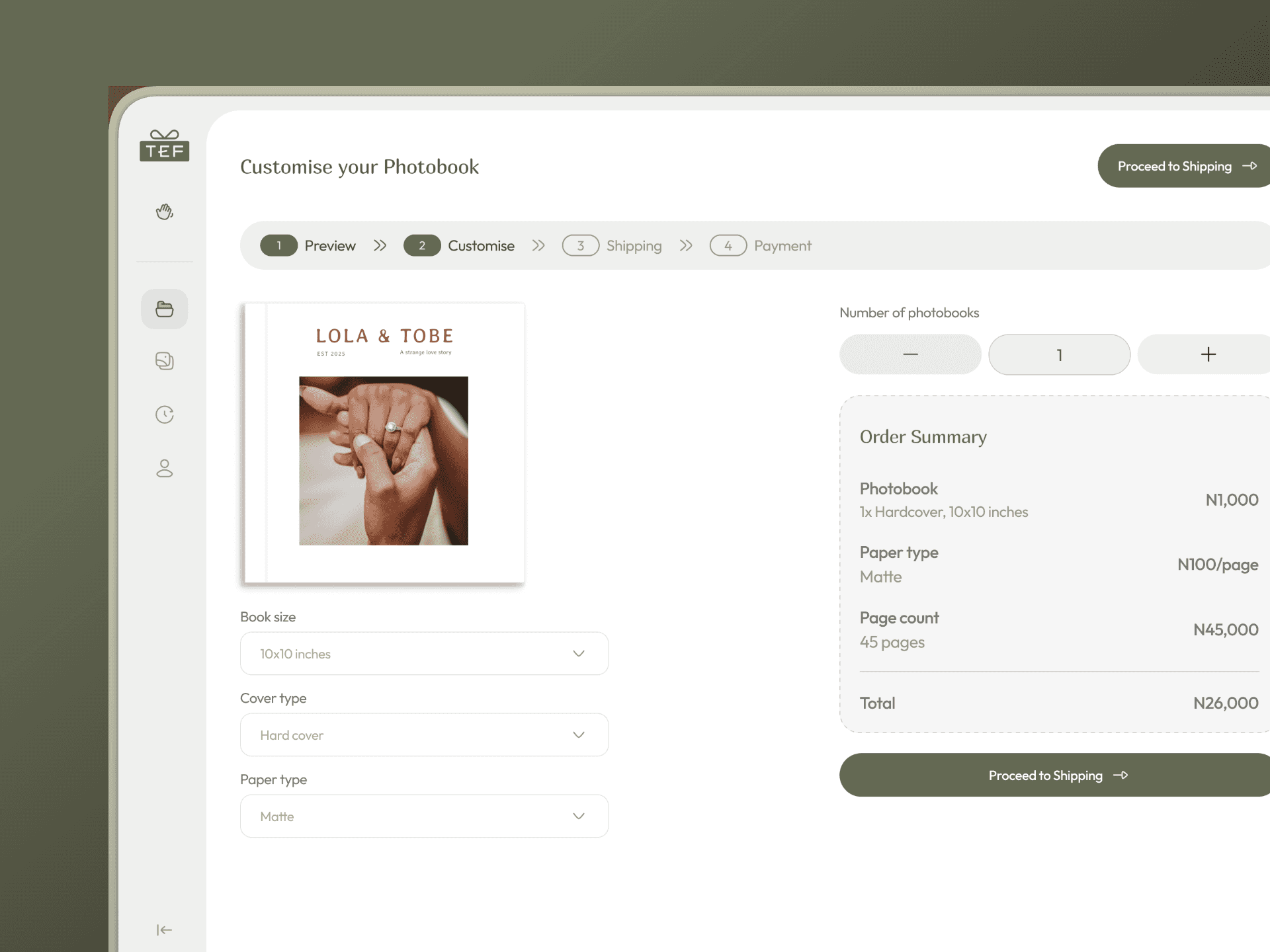 Tef Giftings is a platform created to enable people preserve memories by giving them the ability to customise and order photobooks.